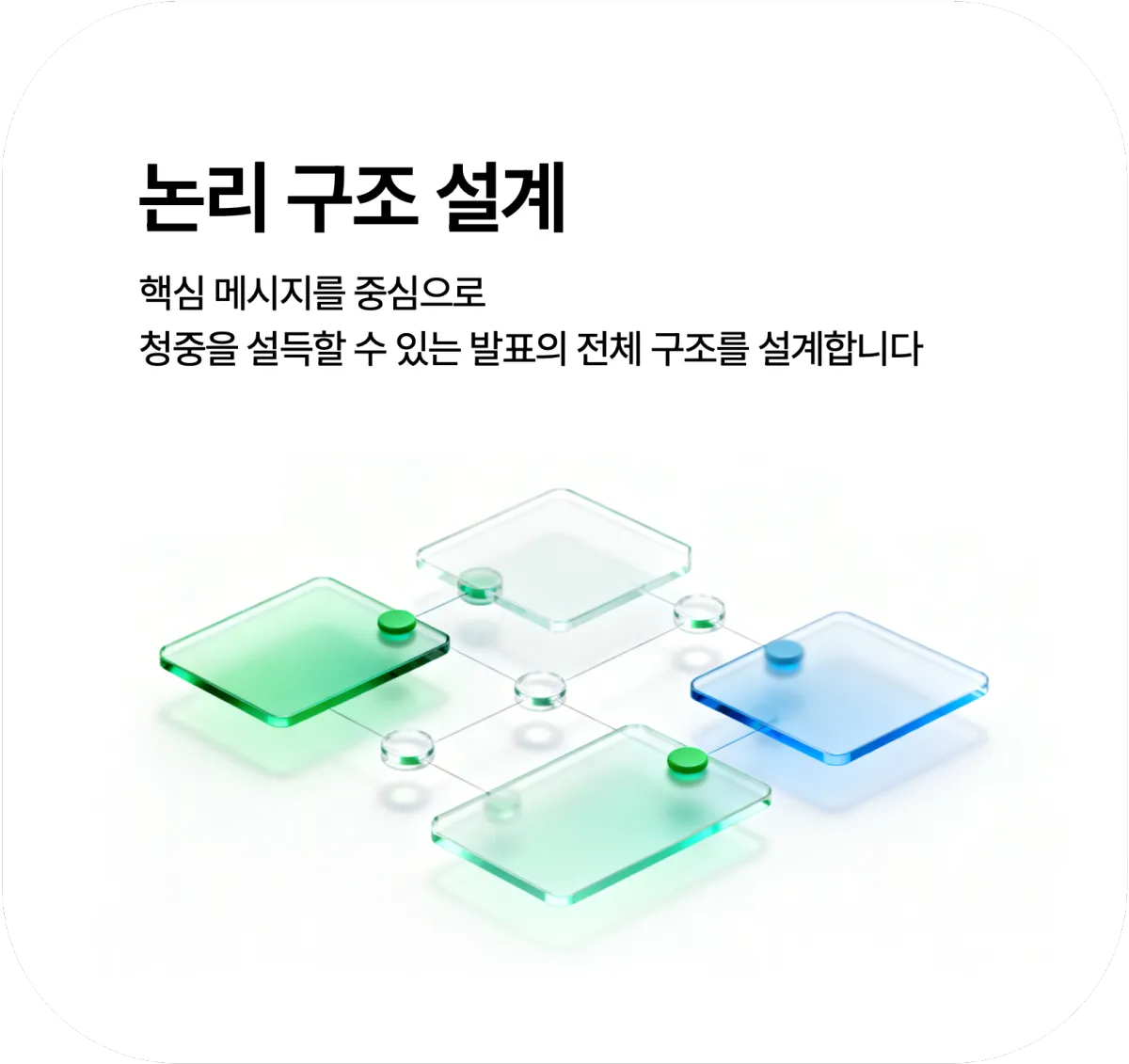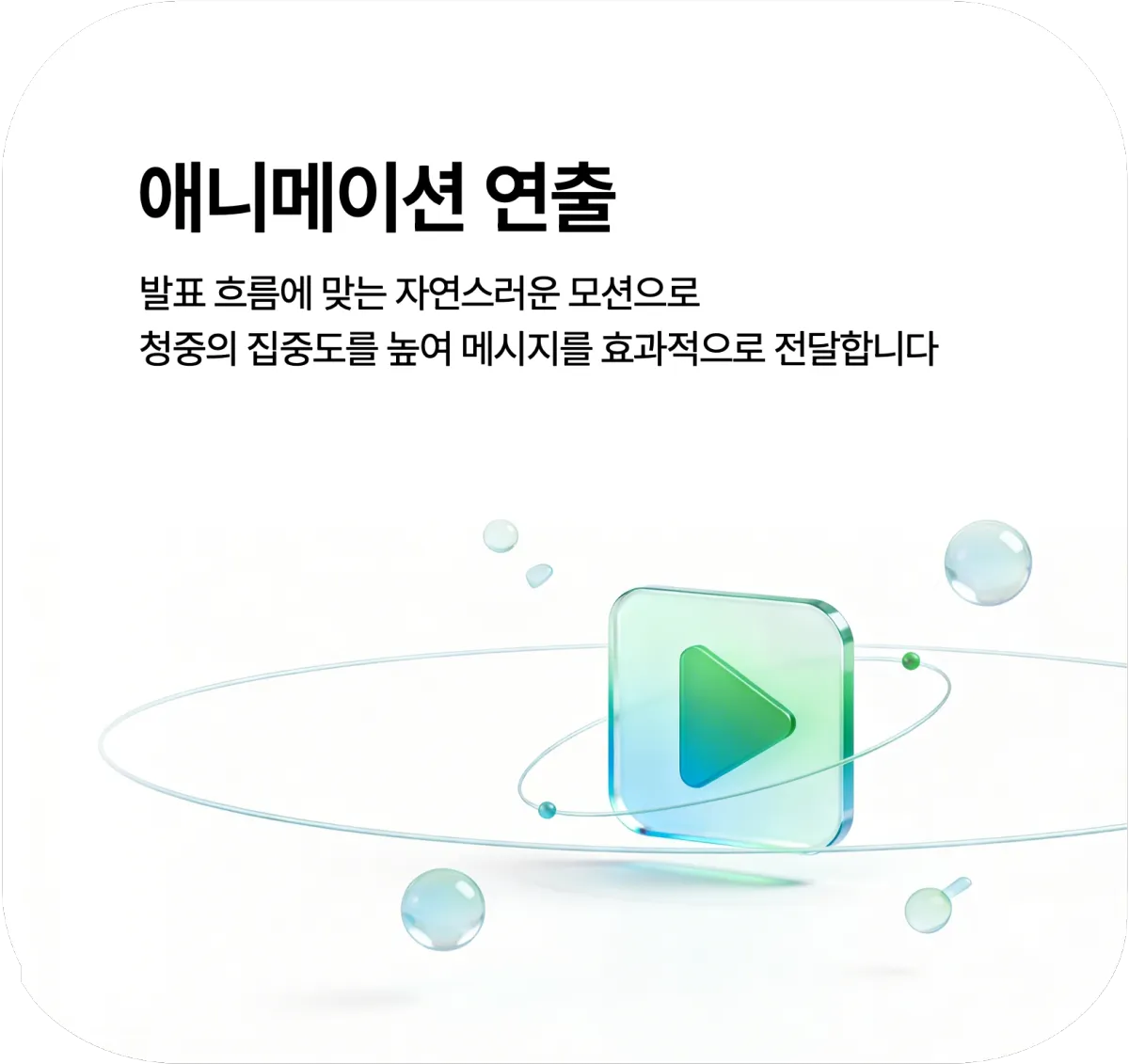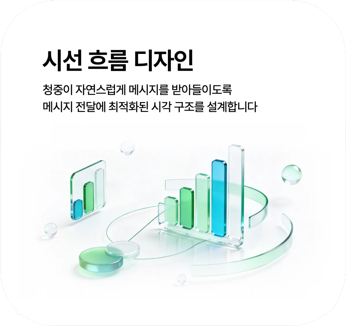 자료의 목적과 전달해야 할 메시지에 맞춰 구조 설계부터 디자인, 애니메이션 연출까지 모두 진행합니다.